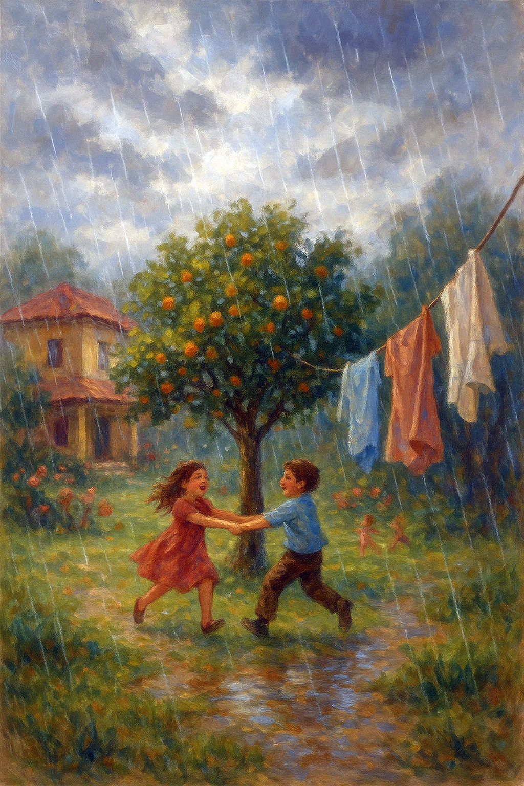 Soraya had forgotten to bring the wet clothes in from the rope they were hanging to dry