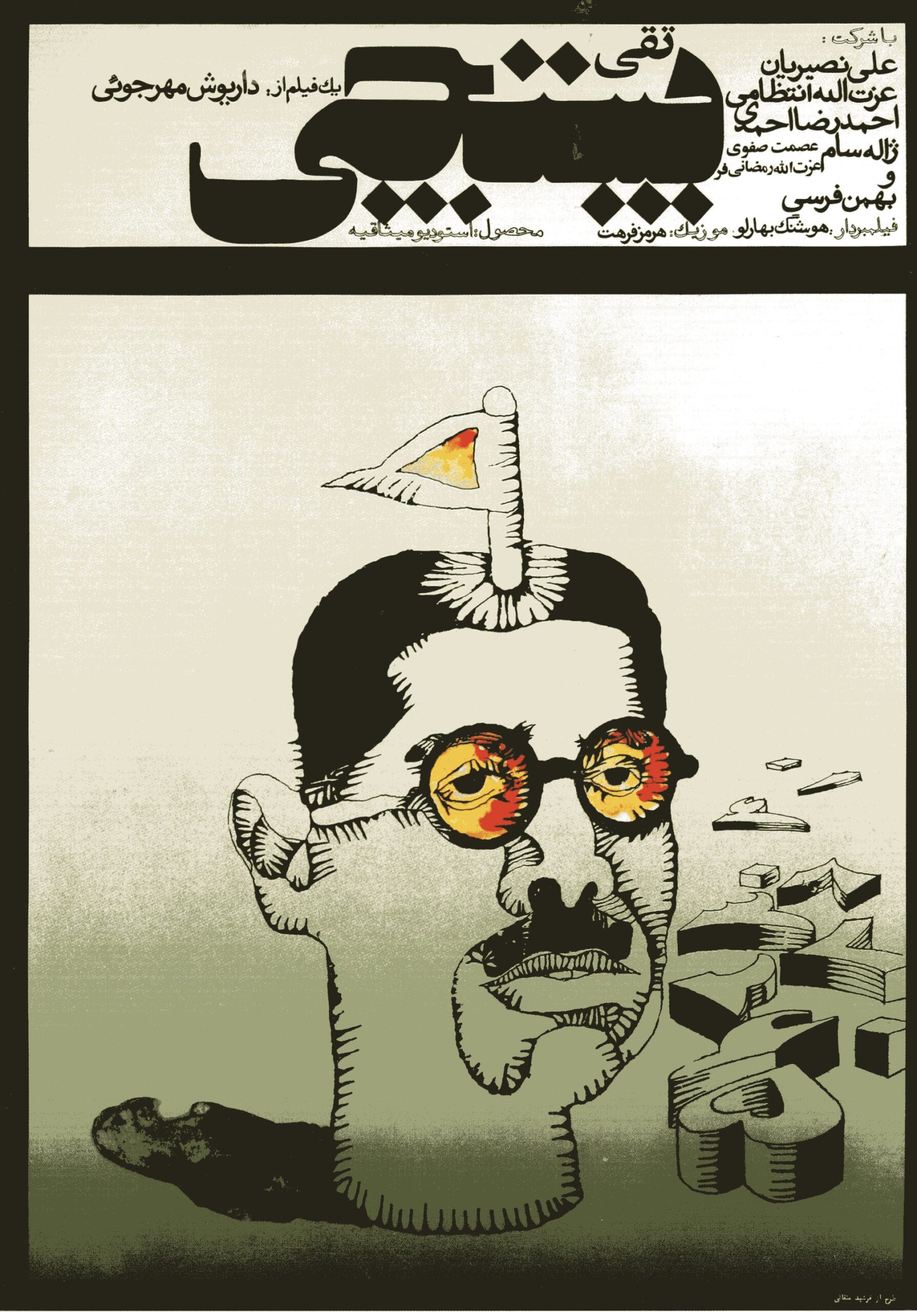 After the experience of making The Cow, Mehrjui was in search of a story or play that he could quickly and easily adapt into a film. His collaboration with Ali Nassirian in The Cow made this possible. By that time, Nassirian’s play Mr. Naïve (Agha-ye Halo) had already been staged four times with his own theater group and had once been performed live on Sabet Pasal Television in 1963.